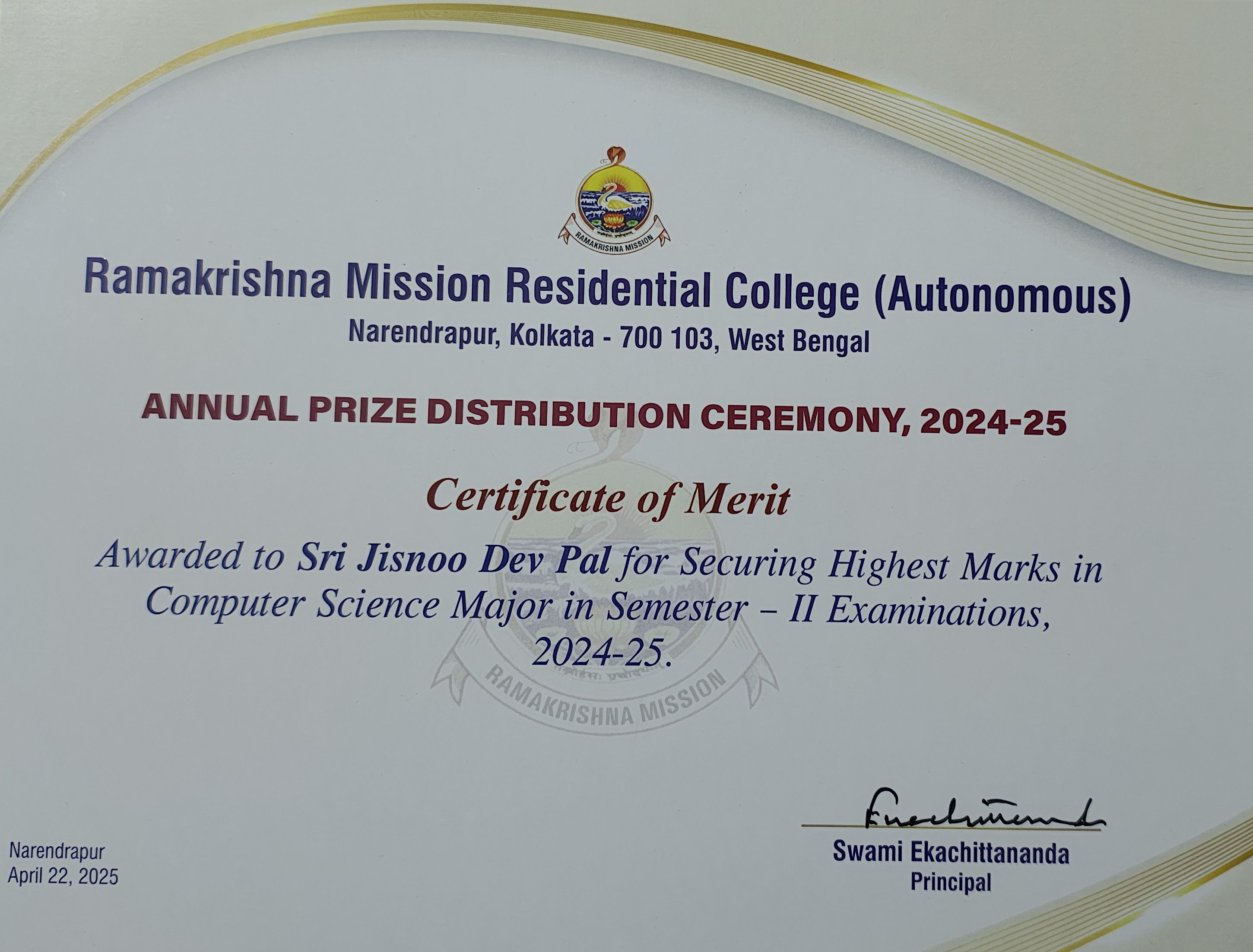 B.Sc. (Hons.) in Computer Science (2023 - Present)